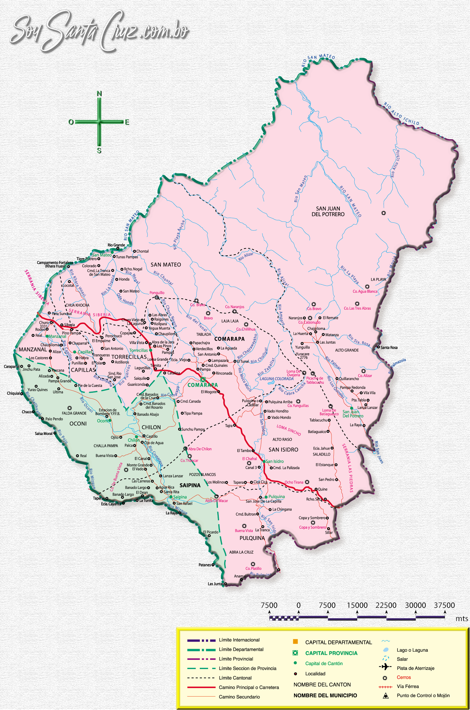 Mapa: Político · Provincia Manuel María Caballero. Libro: Santa Cruz. Linda Tierra. Geografía y Vida. Año: 2000. Autor: Eduardo Domínguez Martilotti. Labor Didáctica, Publicaciones Educativas.